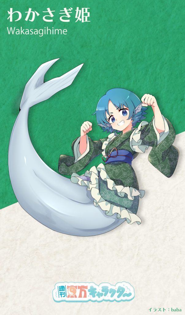 霧の湖で暮らす人魚のわかさぎ姫。「草の根妖怪ネットワーク」の一員でもあり、同メンバーの今泉影狼と交友関係にあります。