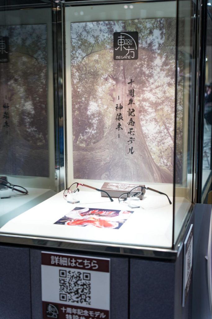 東方眼鏡が10周年を迎えまして、記念のモデルを制作しました。フレームに、伊勢神宮などで使われている森に生えていた、実際の御神木を使っています。