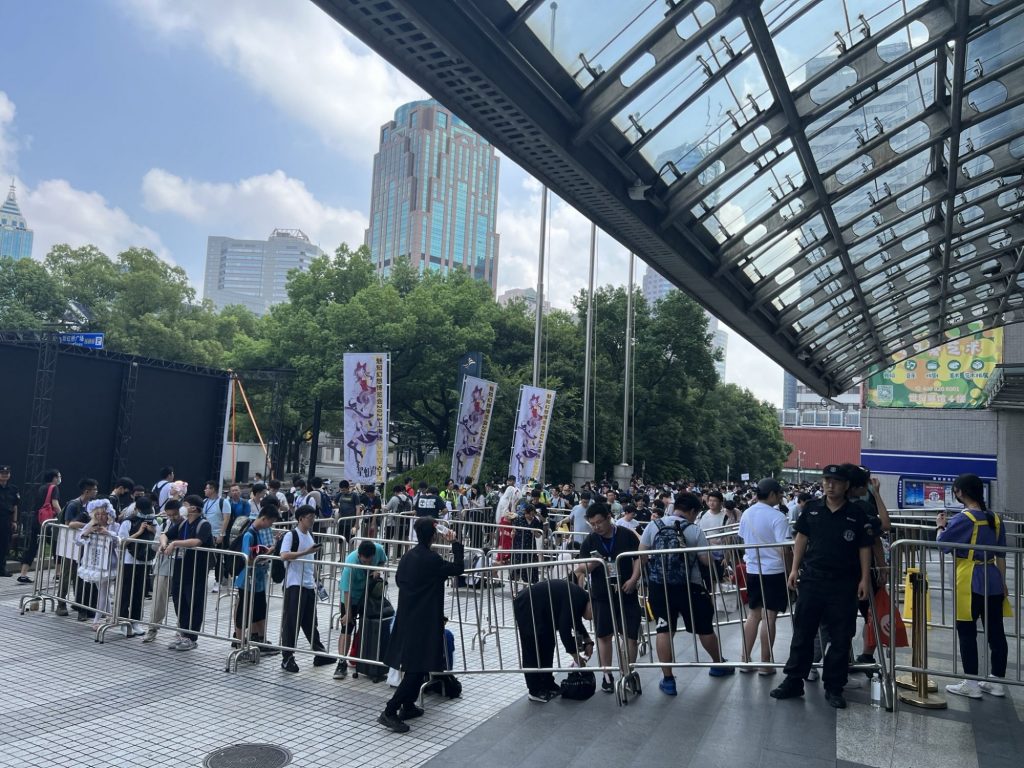 当日の朝、会場正面に設置された看板が参加者を迎えます。イベント開始まで1時間以上ある時点で、入場口を先頭に一般参加者の待機列が伸びており、少なくとも数百人は並んでいました。入場時はリュックやスーツケースなど大きい荷物は必ずX線検査を通します。中国では、地下鉄の改札口やイベント会場など不特定多数の人が集まる場所でしばしば手荷物検査が行われます。これは、上海THOが一般的にみて比較的規模の大きな催事であることを示す一面と言えます。手荷物検査を済ませると、受付カウンターでサークル参加費支払いと身分証(外国人はパスポート)の確認を済ませます。