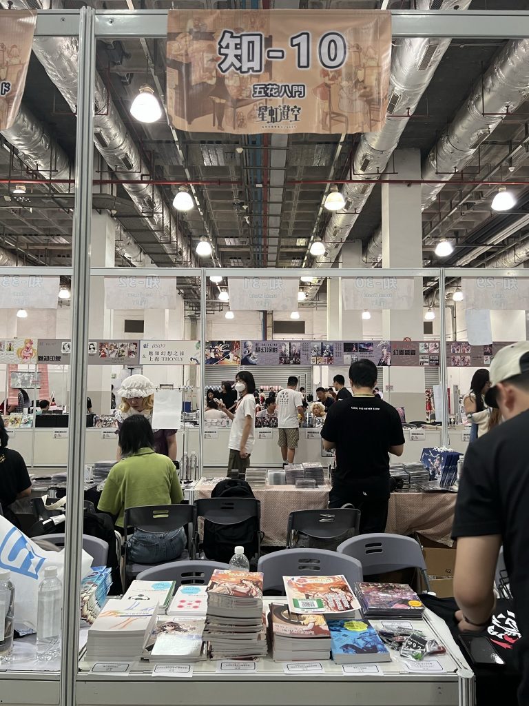 ちなみに、サークル入場時間帯であってもスペースに作品を並べておくと購入していく人が現れます。多くはサークル参加者かと思いますが、中国の同人イベントではこれが普通です。