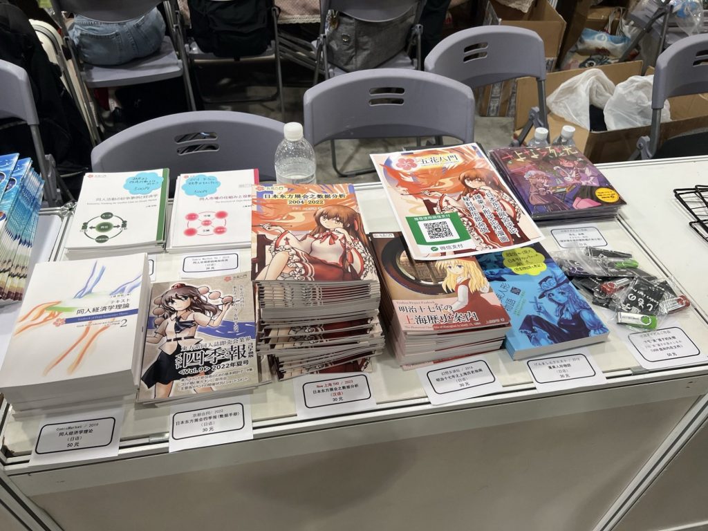 今回の上海THOでは、私は新刊として日本の東方イベント評論冊子を用意しました。これは中国語で書いたもので、五花八門のような文章中心の評論サークルにとって重要な宣伝手段となりました。中国語で評論作品を制作する日本サークルは珍しかったようです。また、既刊の日本語作品は上海をテーマにした東方同人誌を多めに持参しました。表紙の「上海」の文字に反応してくださる方もいました。外国の同人イベントでは、無理のない範囲で相手にとって分かりやすくする工夫は意味があると思います。