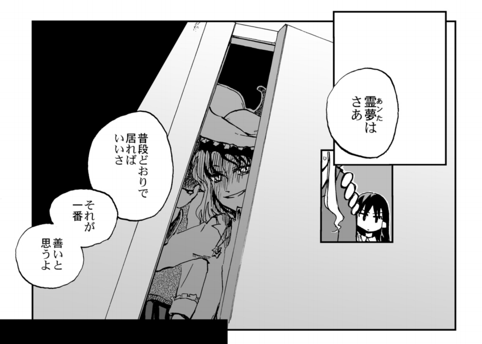 境界を越える妖怪である八雲紫は、この手のメタ発言を担うことが多い。ここで語られていることも、作中の異変であると同時に、作品外について言及するまぎれもないメタ発言だ。