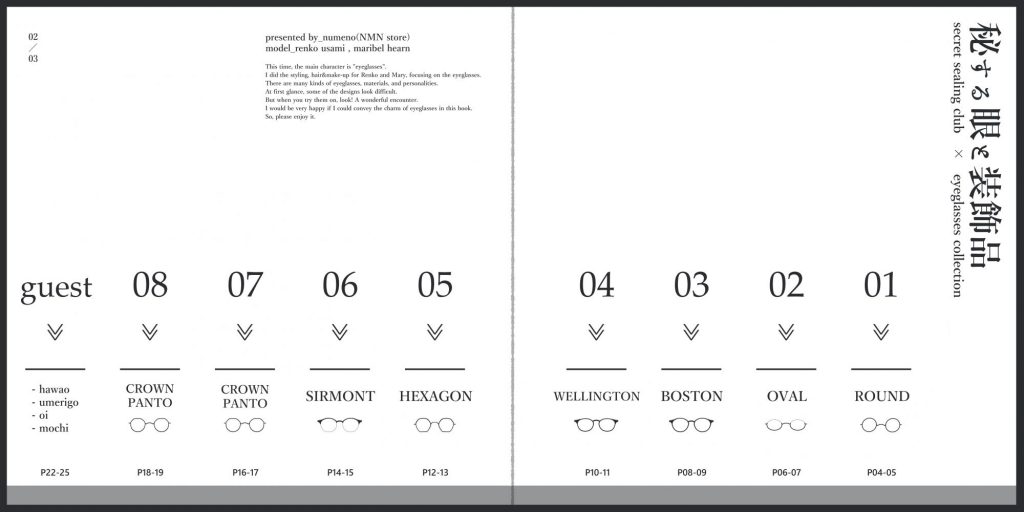 本誌で蓮子とメリーのふたりが掛ける眼鏡の数々は、まるで実在する製品のようなリアリティを有している。スクエア型の冊子もカタログを意識した構成となっており、見目にも美しさが感じられる。