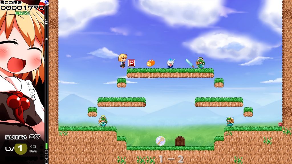 もちろん、すごいのはルーミアのドット絵だけではありません。各ワールドの最後にボスキャラとして待ち構えるおなじみの東方キャラや、雑魚キャラのウサギや妖精にいたるまで、本作の登場キャラのドット絵はどれも魅力的。