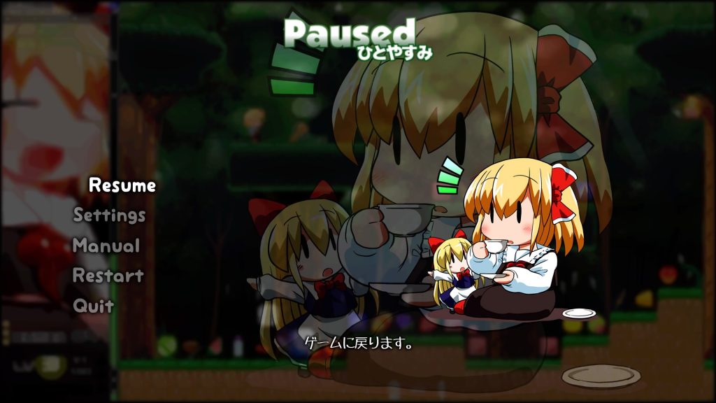 本作は主人公であるルーミアのドット絵によるアクションのひとつひとつが非常にかわいらしく、まさに「ルーミアを動かしているだけで楽しいゲーム」となっています。