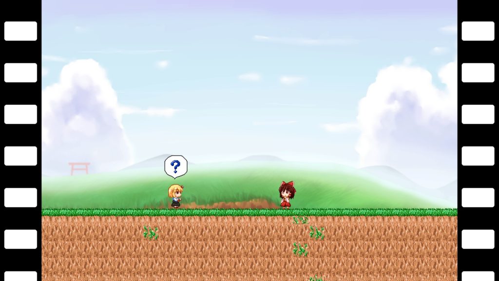 ルーミアは数ある東方キャラの中でも幼いイメージのあるキャラクター。そんなルーミアが主役だからこそ、長々とセリフをしゃべらせるのではなく、ドットキャラのアクションと吹き出しで端的に感情や情緒を表現するスタイルは、キャラクターの幼さやかわいさがより引き出されています。