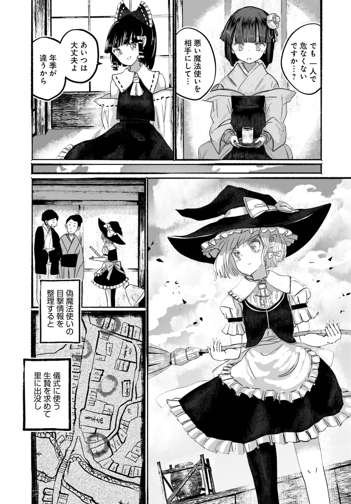 里の人間が次々と「魔法使い化」する謎の現象が続発。解決に乗り出した霊夢・魔理沙は思わぬ事態に巻き込まれていくことに……!