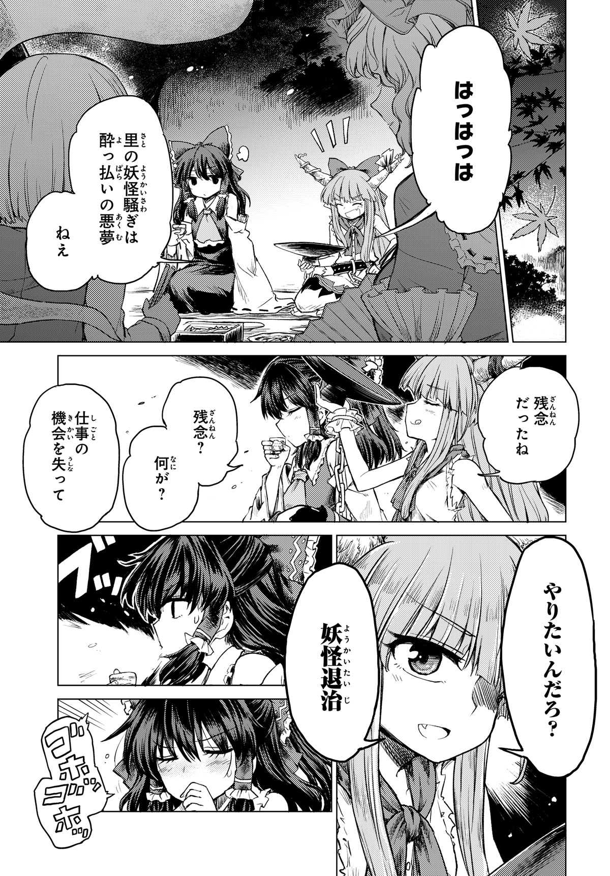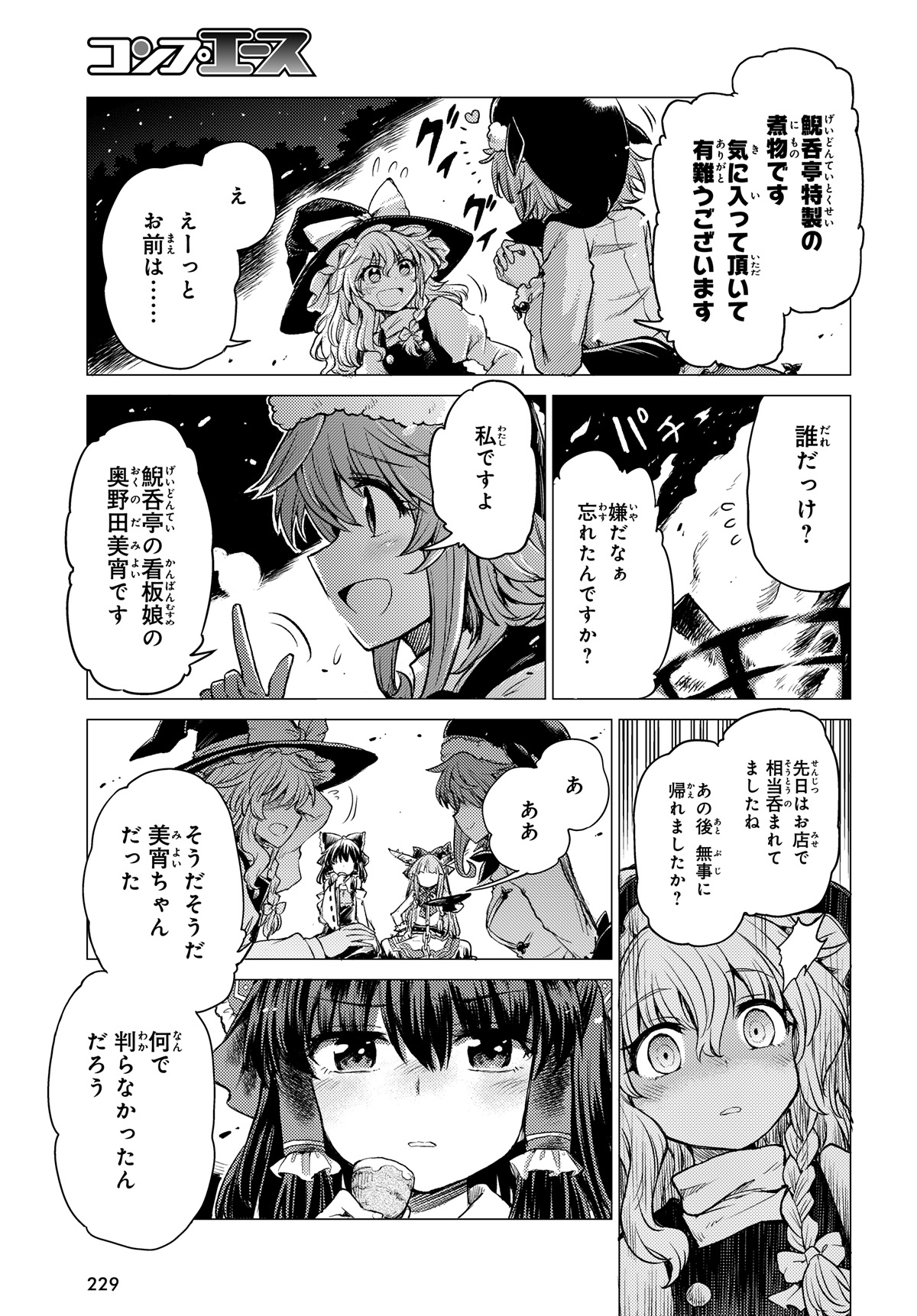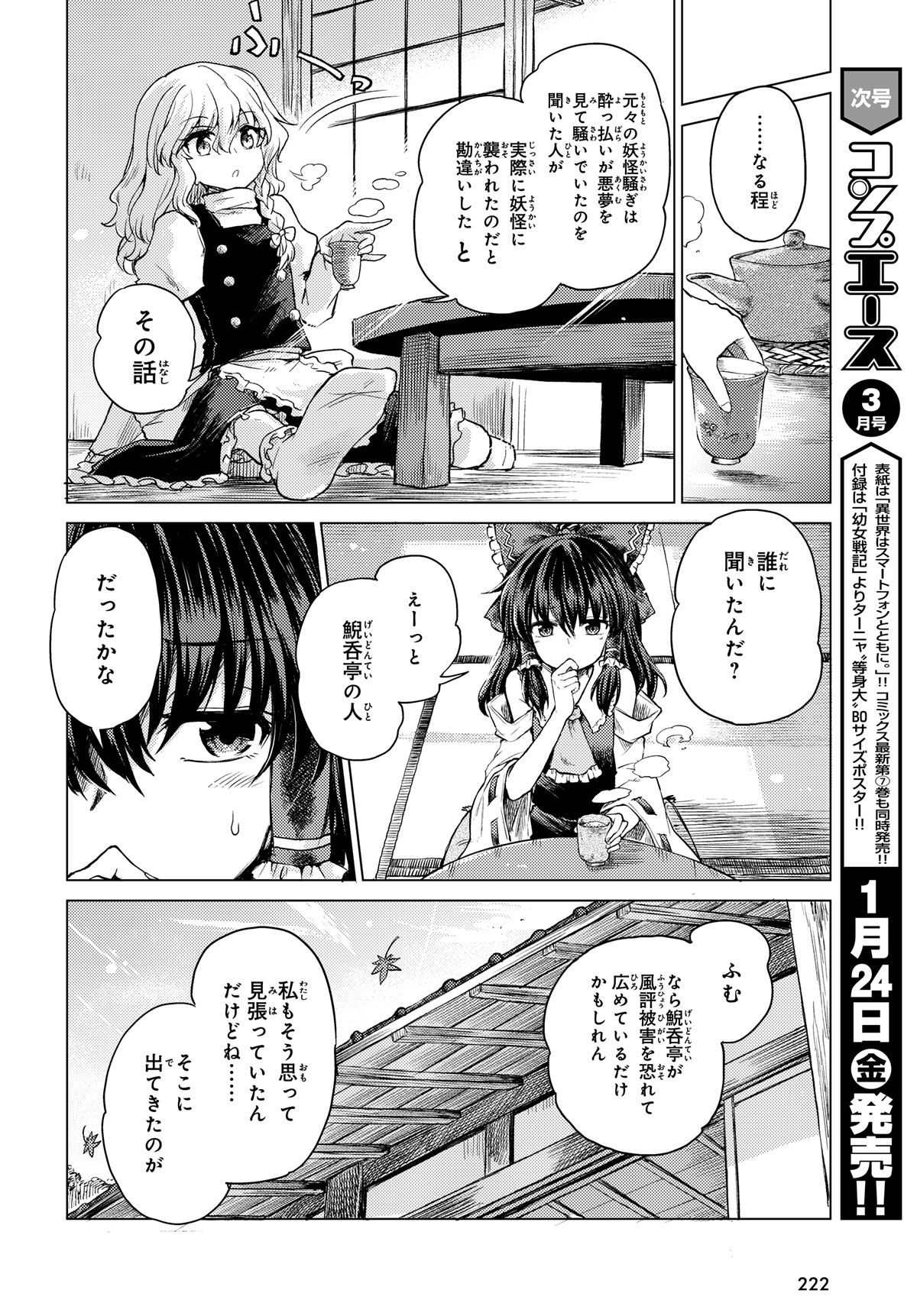 幻想郷の人里にある居酒屋「鯢呑亭(げいどんてい)」でにわかに沸き起こった妖怪騒ぎについて、霊夢が調査に出たけれど…!?