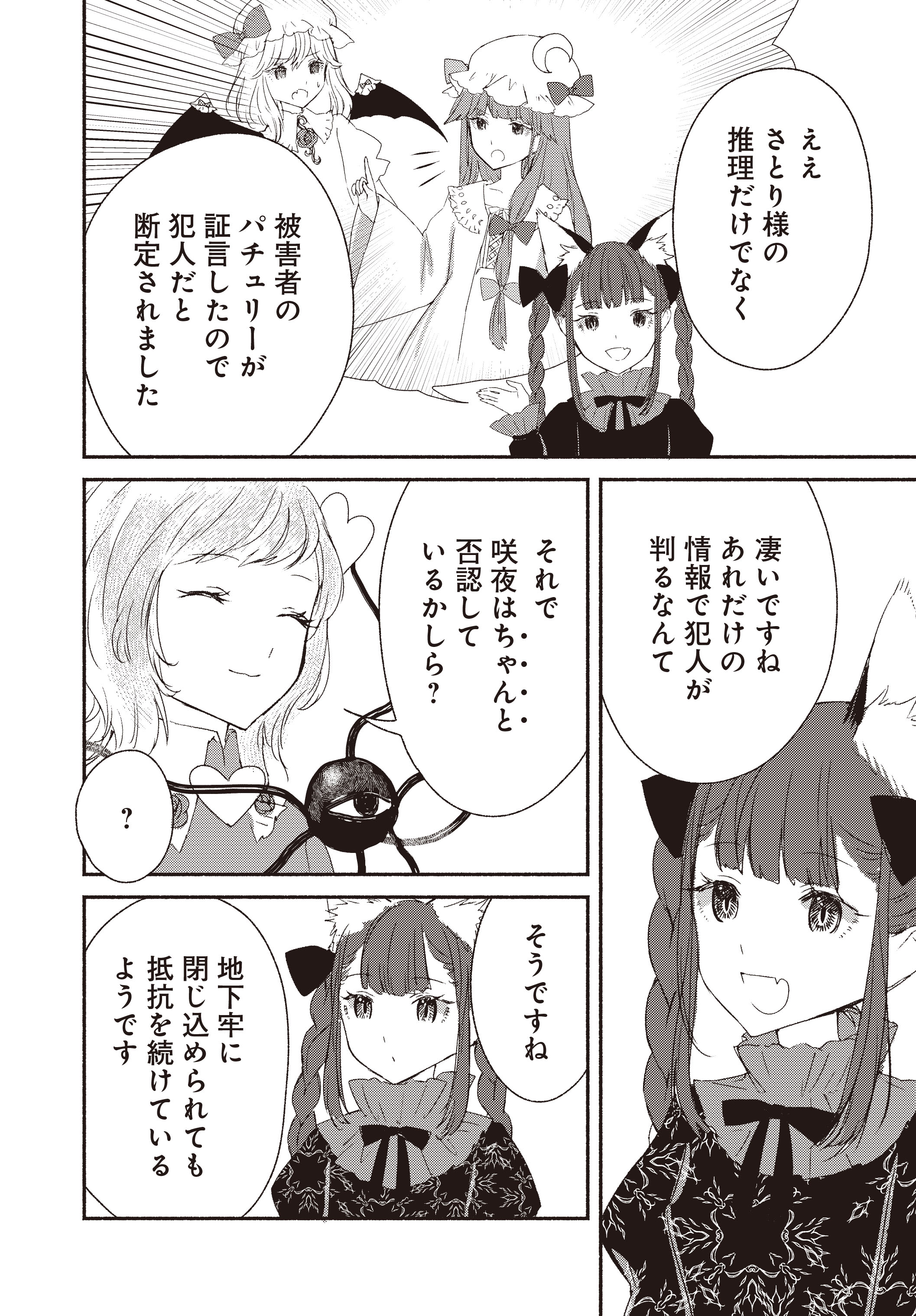 東方Project公式連載が電子専用で登場! 幻想郷でにわかに勃発する難事件。異変解決の専門家たちが戸惑う中で、相手の心を読める妖怪「さとり」が反則的に事件を解決する――!