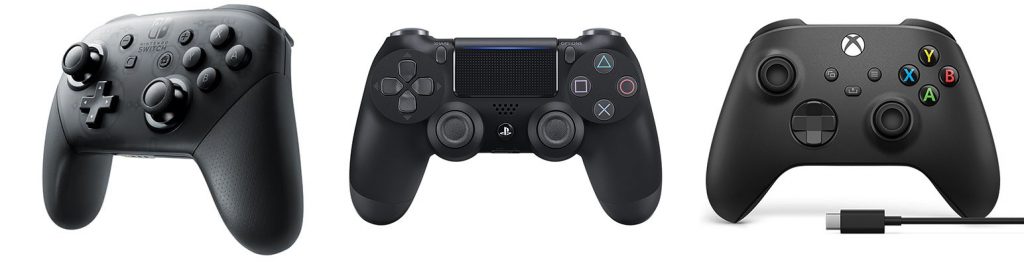 上で挙げた「Nintendo Switch Proコントローラー」「PlayStation4コントローラー(DUALSHOCK 4)」「Xbox ワイヤレス コントローラー」、どれもUSBケーブルでパソコンに繋げばゲームパッドとして使うことができますので、こちらを使うのもオススメ!