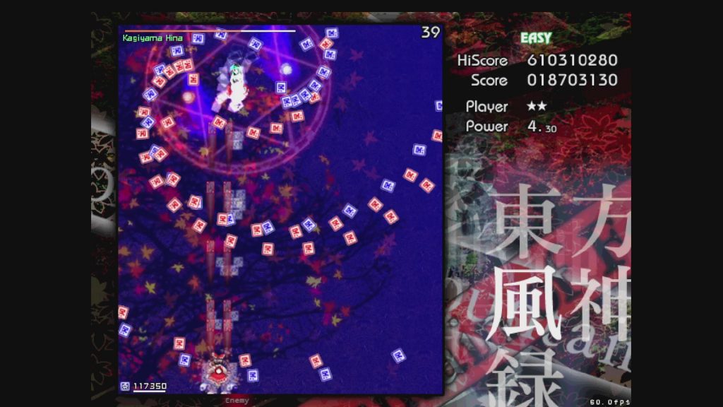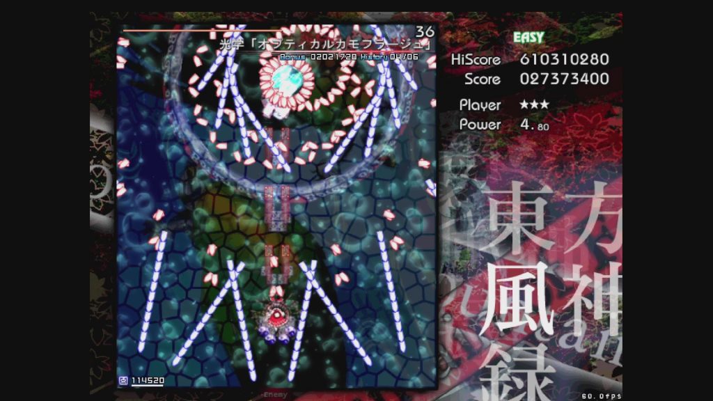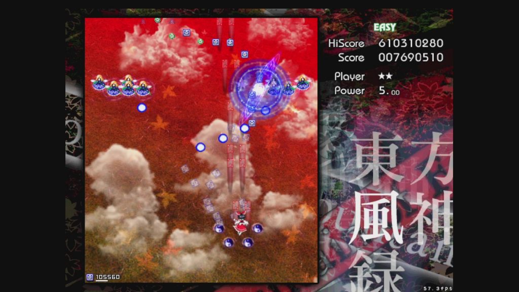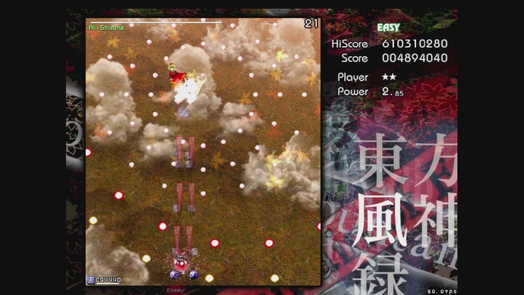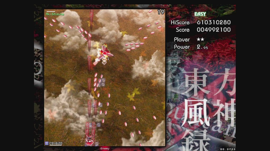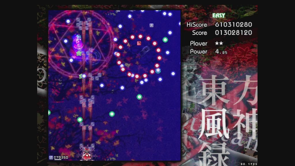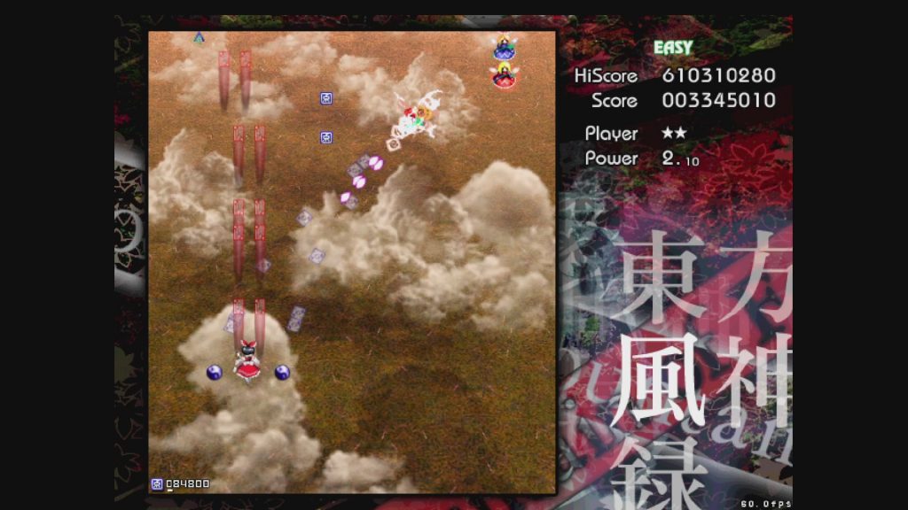 最初に遊ぶタイトルは、お伝えしている通り「東方風神録」。難易度はEasyです。ここは気合で!みたいな内容にはせず、できるだけ具体的にどう避ければよいかを伝えていきたいと思います。