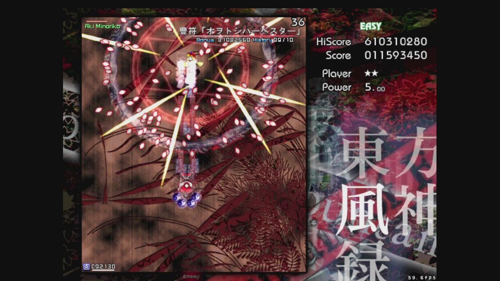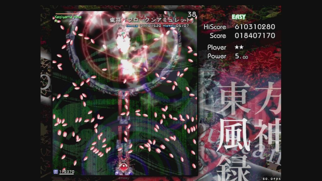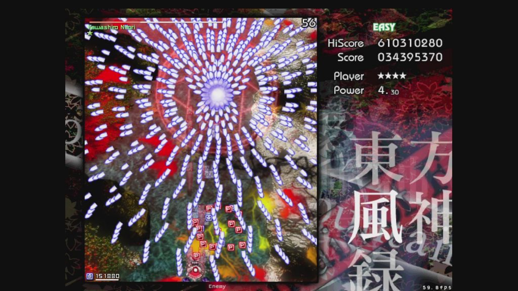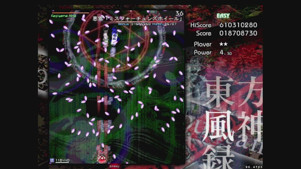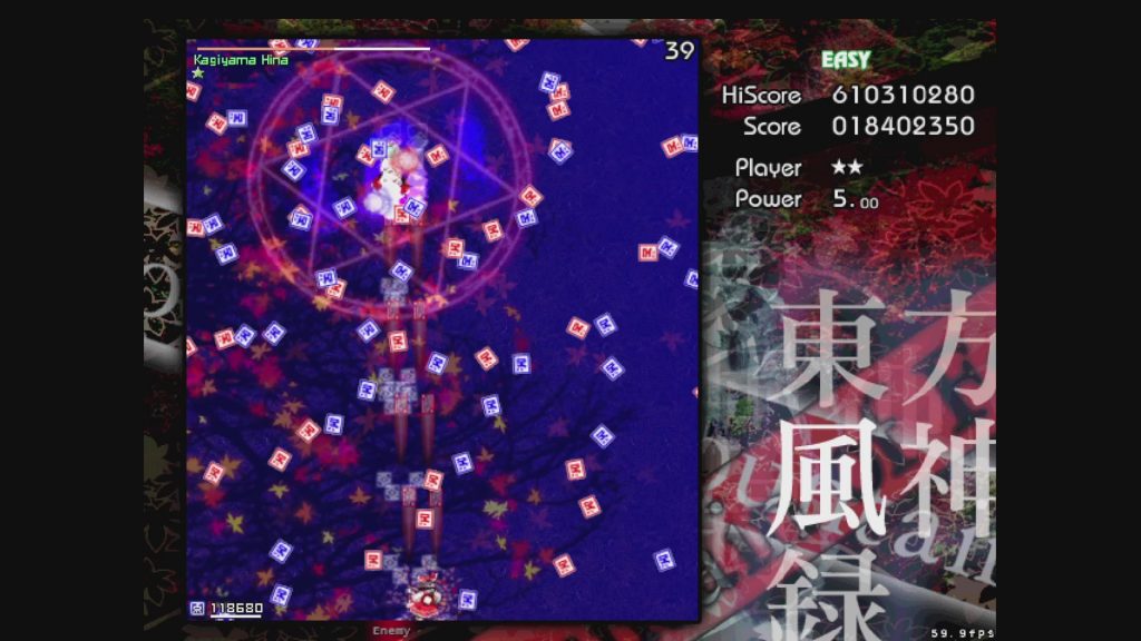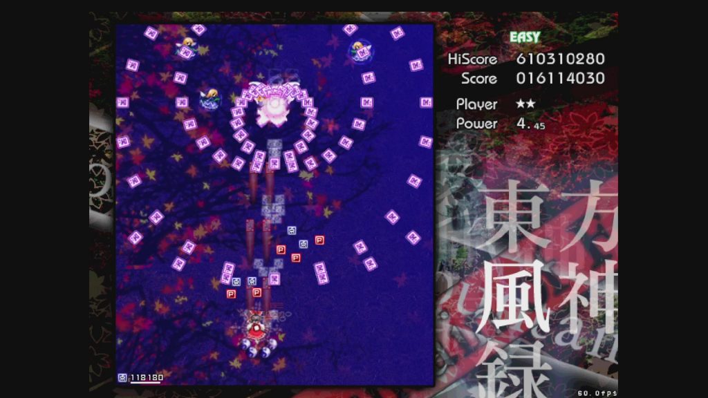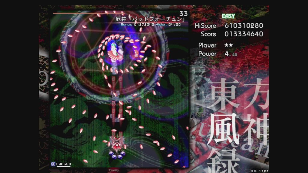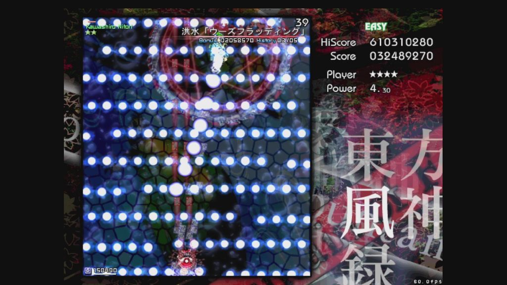 最初に遊ぶタイトルは、お伝えしている通り「東方風神録」。難易度はEasyです。ここは気合で!みたいな内容にはせず、できるだけ具体的にどう避ければよいかを伝えていきたいと思います。
