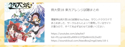 【例大祭音楽まとめ】第十八回博麗神社例大祭(静岡開催)で頒布される“東方アレンジCDの試聴まとめ”が『東方音楽歴』より到着!