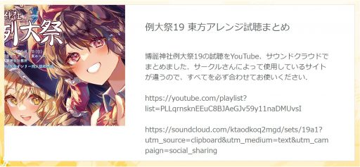 【例大祭音楽まとめ】第十九回博麗神社例大祭で頒布される“東方アレンジCDの試聴まとめ”が『東方音楽歴』より到着!