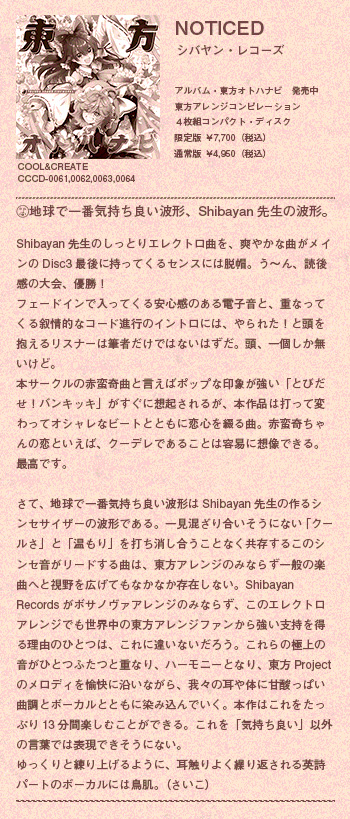 地球で一番気持ち良い波形、Shibayan先生の波形。『東方オトハナビ』全曲レビュー!! Disc3-10『NOTICED/Shibayan Records』