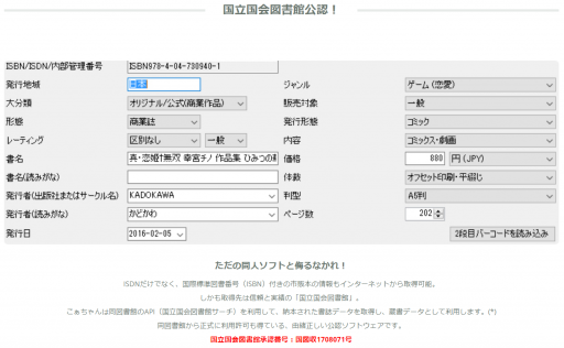 ISDN(国際標準同人誌番号)に標準対応しています。ISDN