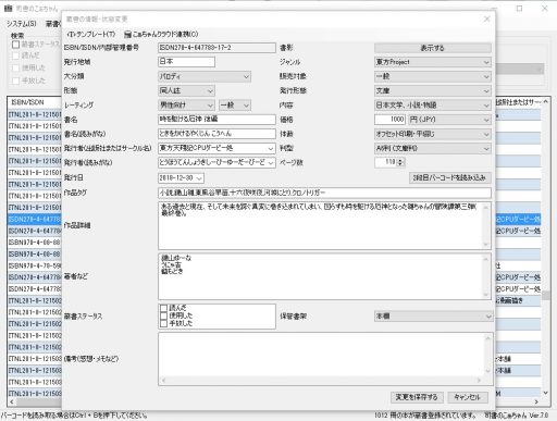 薄い本管理特化の蔵書管理ソフトウェアです。薄い本や市販の漫画