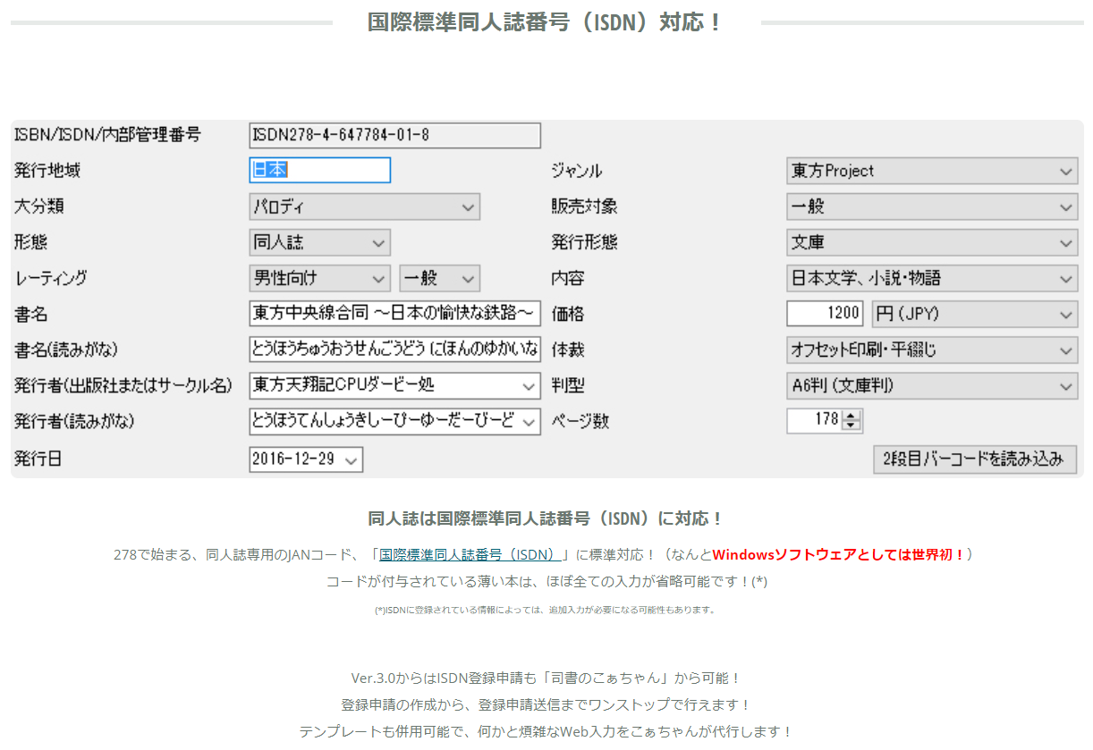 ISDN(国際標準同人誌番号)に標準対応しています。ISDN