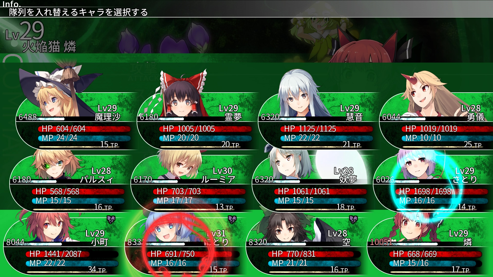 「東方 Project」のキャラクター達を使いこなして大人数の 12 人パーティーを結成し鍛え上げ、待ち受ける強大な敵とのバトルに立ち向かおう!一筋縄ではいかない強烈ボスが勢揃い。50 以上登場するプレイアブルキャラの中から最適なパーティーを構築して、いざ、天を貫く広大な迷宮へ!やり込んだら止まらないダンジョン RPG、お気に入りキャラをトコトン贔屓もできる育成要素と共に楽しもう!