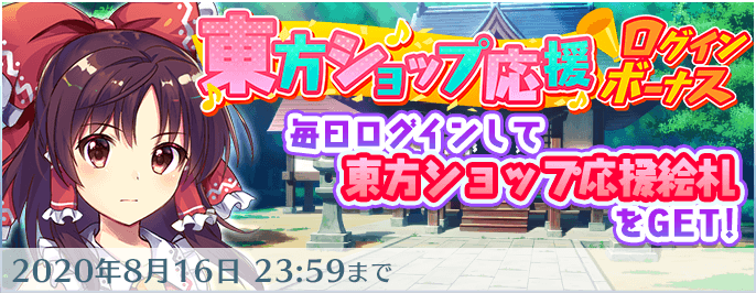 8月1日(土)0:00より東方Project関連商品を扱うショップさんを応援する「東方ショップ応援ログインボーナス」を開催いたします。