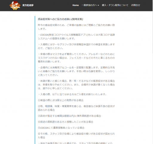 東方紅楼夢ホームページに、参加者向けの「感染症対策へのご協力のお願い」が公開されています。