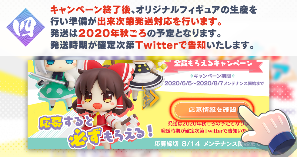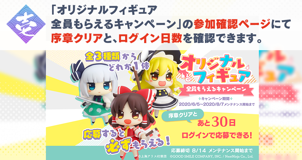 弾幕RPG『東方LostWord』にて100万DL感謝「オリジナルフィギュアが全員もらえるキャンペーン」実施決定!!