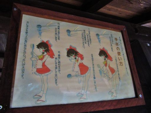 その筋では有名(?)な「霊夢っぽい」看板。巫女さんの服と言うにはあまりにアレンジされた衣装、神社の方も「これ袖どうしたの?」とか聞いたりしなかったんでしょうか(神社の方が霊夢ファンの可能性も……?)。