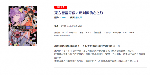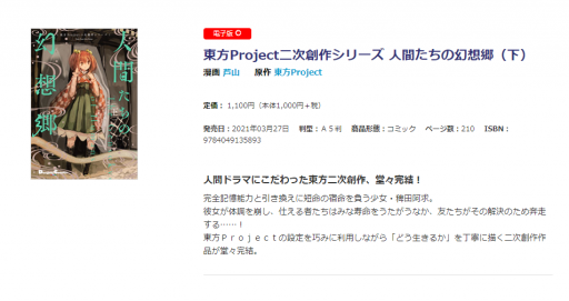 東方外來韋編Webに掲載されている『東方智霊奇伝』2巻、『人間たちの幻想郷(下)』が3月27日に同時発売となります。