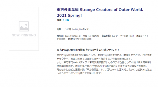 『東方外來韋編 Strange Creators of Outer World. 2021 Spring!』3月31日に発売決定。特集内容も公開