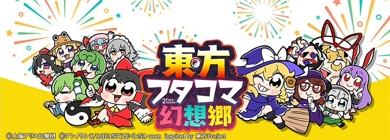 あわせて、「東方Project」のキャラクターたちを題材に大川ぶくぶさんが描く2コマ漫画『東方フタコマ幻想郷』の連載が決定しました。本2コマ漫画は、『東方ダンマクカグラ』公式サイト内で連載していきます。
