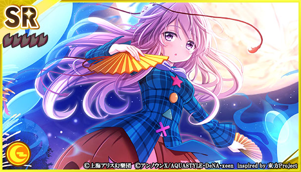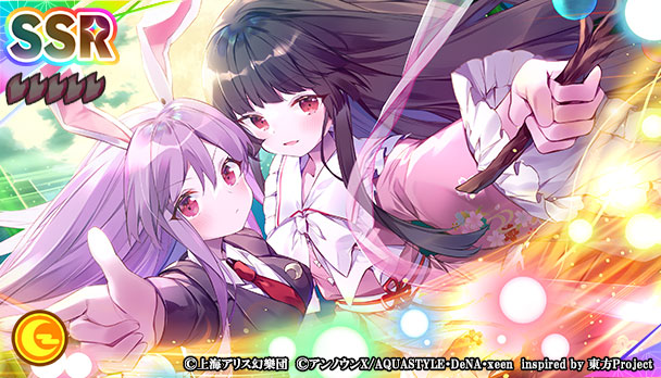本夢見くじには、SSRミタマカード「[兎騒がせな月の姫]蓬莱山輝夜」、SRミタマカード「[蓬莱の薬屋さん]八意永琳」が登場しました。なお、本夢見くじでは、新ミタマカード2枚の提供割合が同レアリティのミタマカードと比較してアップしています。