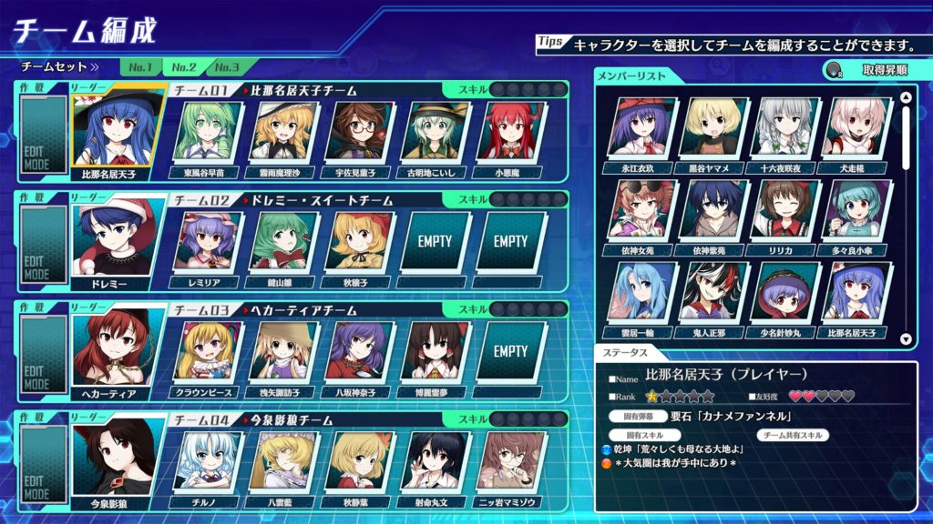 主人公に追従する従来のパーティーとは別に、パートナーからリーダーを選定しその部隊にメンバーを割り振って個別行動させることができます。運用を無視して 「紅魔郷チーム」 「緑髪チーム」 「妹チーム」 など、自分が思い描く自由なチーム編成ももちろんオススメ!◆『バトンタッチシステム』 ― 全ての仲間キャラクターは操作可能に!
