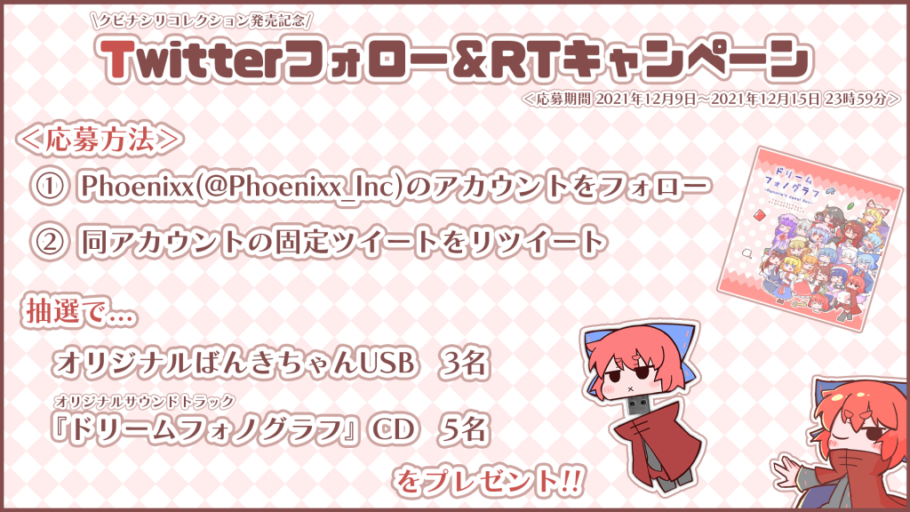 https://twitter.com/Phoenixx_Inc/status/1468596347523969026【#クビナシリコレクション フォロー&RTキャンペーン🎉】