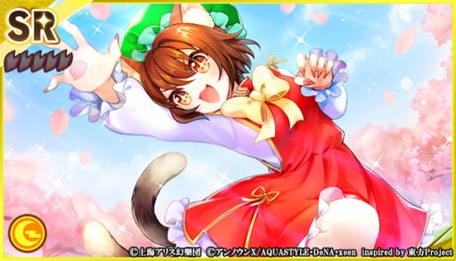 本夢見くじに、SSRミタマカード「[式と共にその四季を]八雲 藍」、SRミタマカード「[猫は喜び春駆け回る]橙」が登場しました。なお、「八雲 藍」は、本作で初登場です。また、本夢見くじでは、新ミタマカード2枚の提供割合が同レアリティのミタマカードと比較してアップしています。