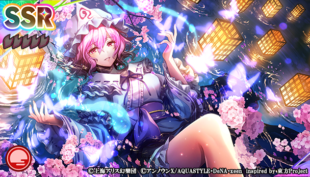 本夢見くじには、SSRミタマカード「[願わくは花の下にて春死なむ]西行寺 幽々子」が登場予定です。