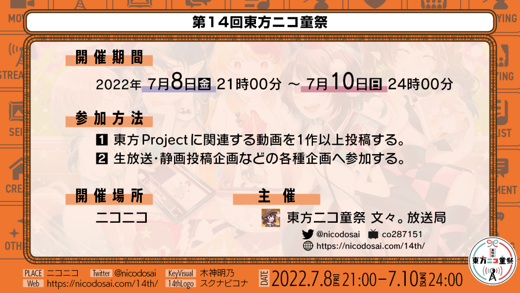 ニコニコ動画で例年開催されている『東方ニコ童祭』は、2022年に14回目の開催を迎えます。
