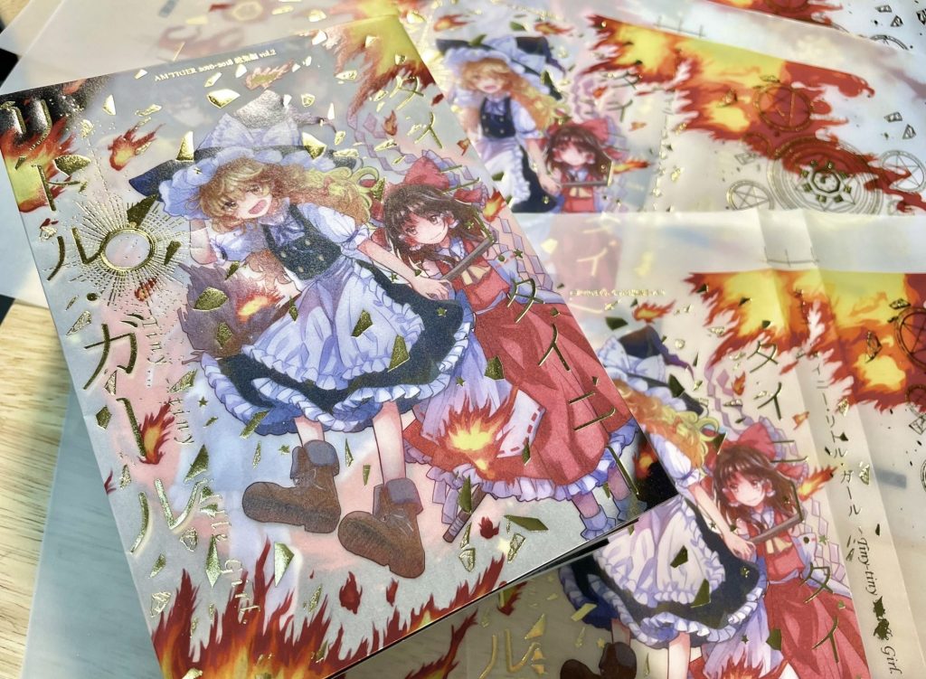 霊夢と魔理沙がメインのカバーは、表紙がうっすら透けるトレーシングペーパーです。