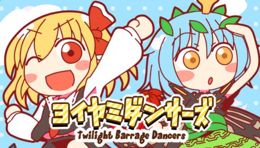 「ヨイヤミダンサーズ」は東方Project二次創作のリズムアクションゲームで、音楽に合わせて弾幕をかわしながら、敵をビシバシやっつけて進みます。かわいくポップなキャライラストと元気よく動き回るドット絵、ほのぼのストーリーとノリノリの東方アレンジBGMがゲームを盛り上げます。4段階の難易度設定に加え、アイテムによるアシスト、細かい操作設定などにより初心者から熟練のプレイヤーまでどなたでも楽しめるようになっています。主人公は「ルーミア」と「エタニティラルバ」の二人、それぞれでストーリーやシステムが異なり、繰り返し遊んでいただけます。また、今後もアップデートにより新たなシナリオが追加される予定となっています。