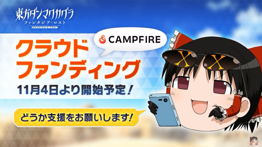 また、11月4日からは『東方ダンマクカグラ ファンタジア・ロスト』の制作を支援するためのクラウドファンディングがスタート。1500万円達成でNintendo Switchへの移植が決まります。ページはすでに公開されており、一緒に“ダンマクカグラを復興を応援する”ファンをCAMPFIREにて募集しています。