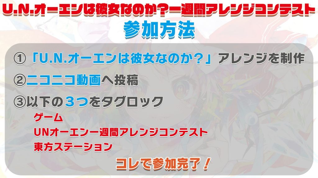 「この東方アレンジがすごい!2022」に合わせて、ニコニコ動画で「U.N.オーエンは彼女なのか?一週間アレンジコンテスト」を開催いたします!