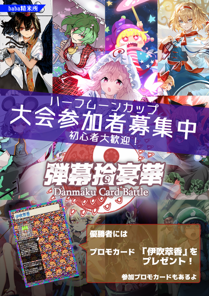 2023年7月9日開催の博麗神社遊芸祭にて、東方二次創作カードゲーム『弾幕拾宴華』第二弾頒布&大会「弾幕拾宴華ハーフムーンカップ🌗」が開催!!