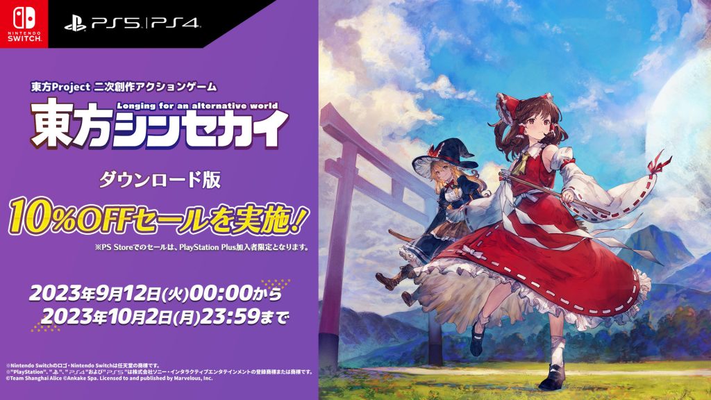 PS Store、ニンテンドーeショップにおいてダウンロード版を10%OFFの特別価格でお求めいただける期間限定セールを実施いたします。期間は2023年9月12日(火)~2023年10月2日(月)です。