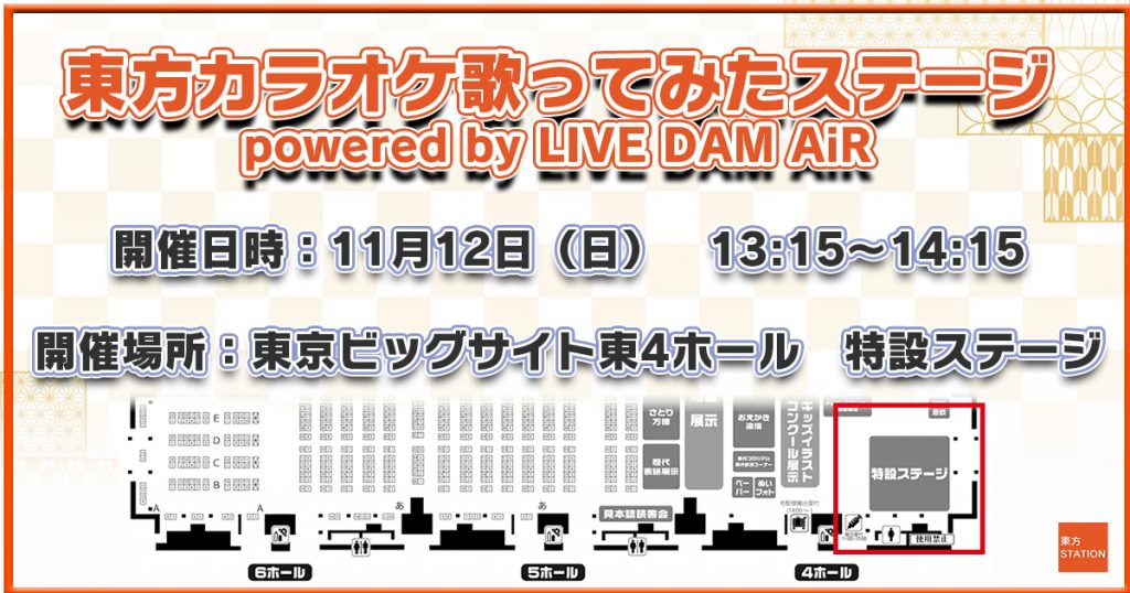「東方カラオケ歌ってみたステージ powered by LIVE DAM AiR」開催日時:11月12日(日) 13:15~14:15