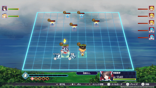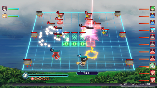 本作のバトルの基本は「タクティクスRPG」。マス目で区切られたステージ上で、時間経過で貯まるポイントを消費して様々なアクションを行い、激しい弾幕合戦を繰り広げましょう。