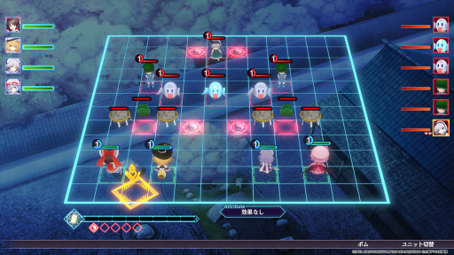 フィールド上には様々な障害物や、上に乗ることで攻撃力の上昇・HPの回復などが発生する、アトリビュートと呼ばれる特殊なマスが設置されている事があります。いずれも特色を把握し、使いこなすことでバトルを優位に進めることができます。