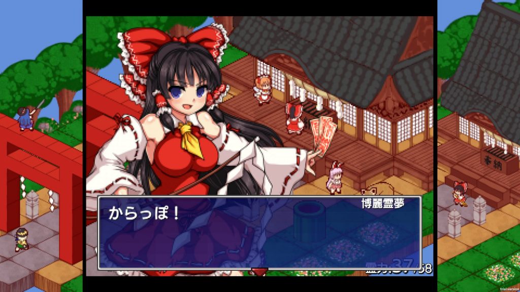 『東方少女綺想譚』は東方Project 二次創作のアクションRPGです。博麗霊夢を主人公として幻想郷に起きた異変の原因を突き止めるべく、斜め視点のドット絵で描かれた幻想郷の各地を冒険していきます。道中では東方Projectに登場した数々のキャラが仲間、あるいはボスとして登場します。ただのコマンド式ではない、プレイヤーのアクションにより結果が変化する戦闘システム、マップのギミックを用いた謎解きや、アイテムを賭けたミニゲームなど、様々なアクション要素も含んでおり、長く楽しめる RPG となっています。