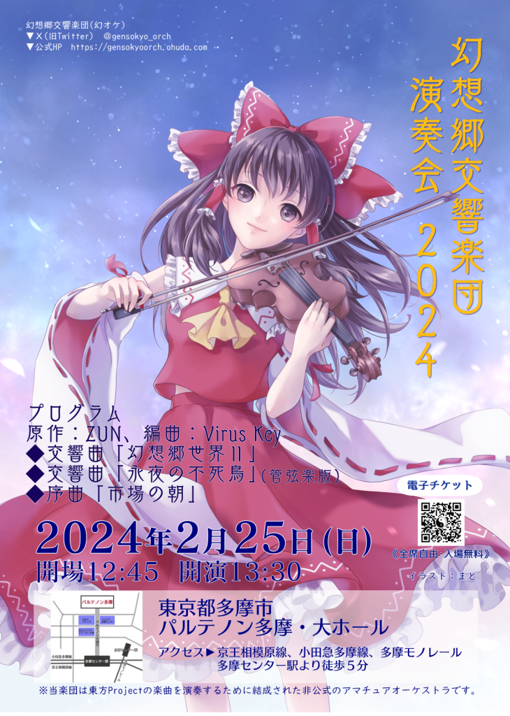 幻想郷交響楽団様より、オーケストラ演奏会「幻想郷交響楽団 演奏会2024」開催のお知らせをいただきました。