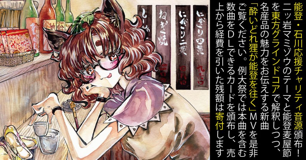 飲んで・食べて応援!能登半島地震復興応援東方アレンジ「酔いどれ狸が能登を往く」MV公開&例大祭頒布情報!