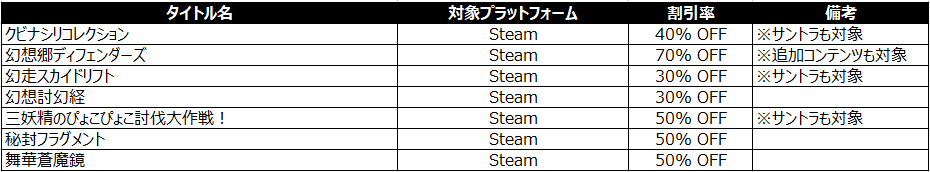 PhoenixxよりSteamにて配信中の「東方Project」関連タイトルが最大70%OFFで購入いただけるスペシャルセールの開催が決定いたしました!この機会にぜひご購入ください!
