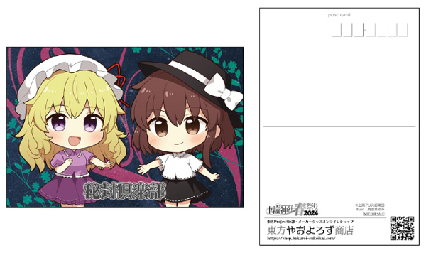 さらに、「東方やおよろず商店」ブースで、関連商品を1,500円(税込)ご購入ごとに【ポストカード(全1種)】を1枚プレゼント!
